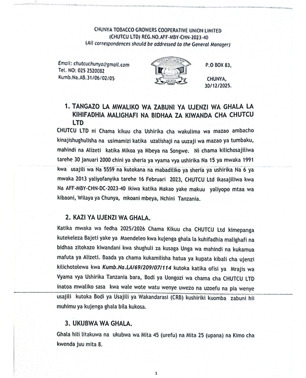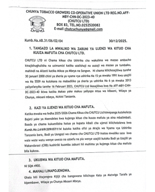 Dhamira ya CHUTCU Ltd ni kuboresha huduma kwa vyama wanachama na kuhakikisha kuwa wanazalisha tumbaku yenye ubora wa juu ili kupata bei nzuri ya kuvutia kwa ajili ya maendeleo yao ya kiuchumi